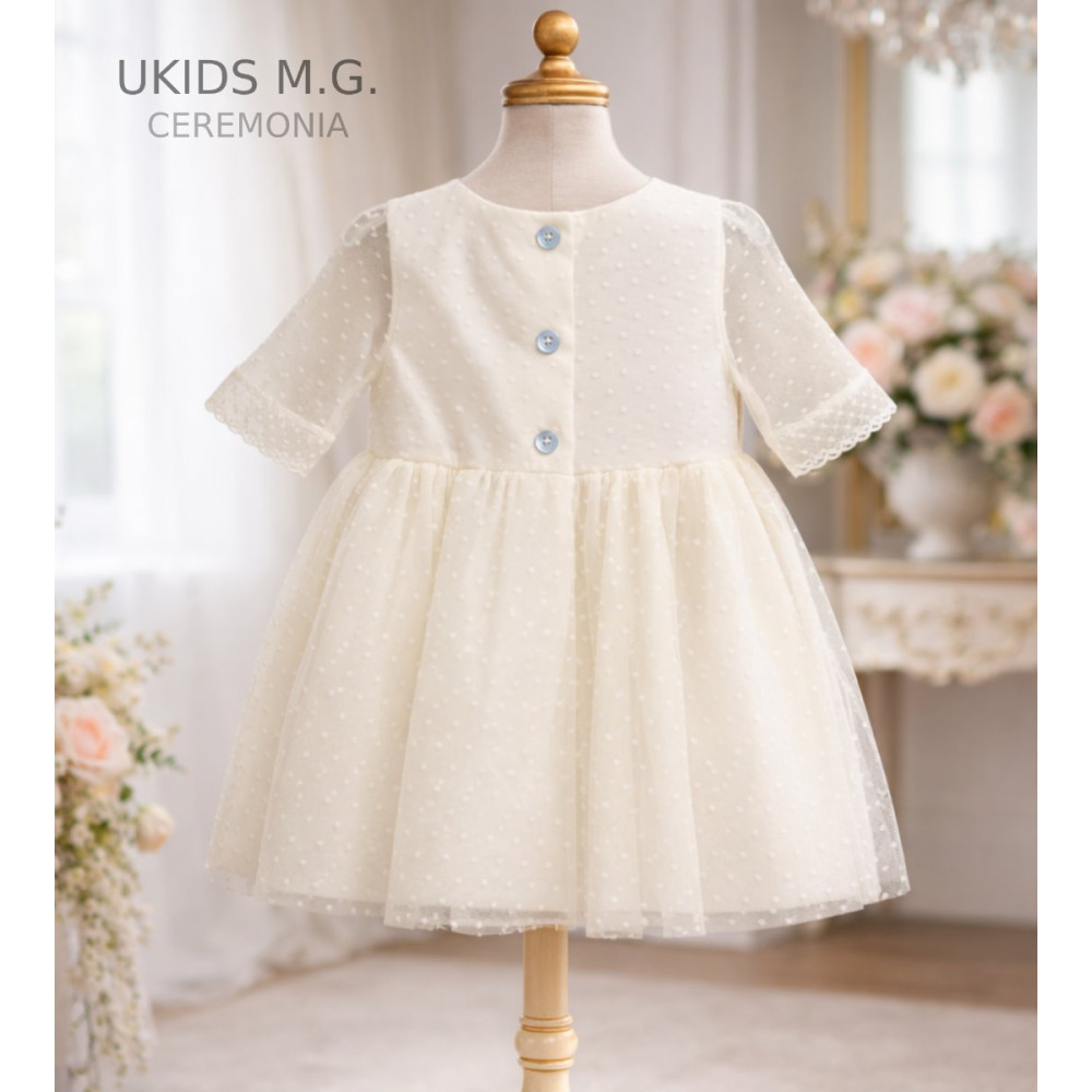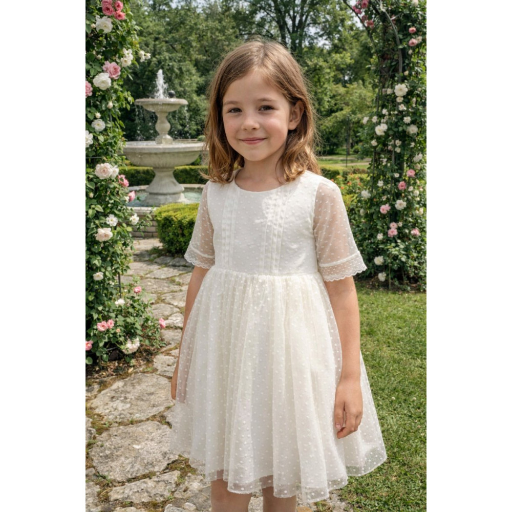 Vestido Tul Plumeti Básico sin fajín color blanco roto.