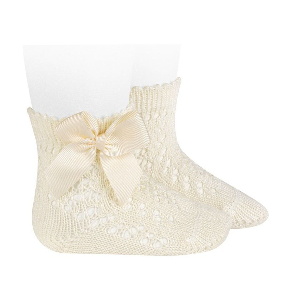 Calcetines cortos algodón perlé calados con lazo grogrén color cava