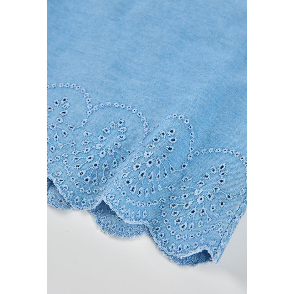 Conjunto Top Denim Bordado Y Pantalón Denim Niña Azul