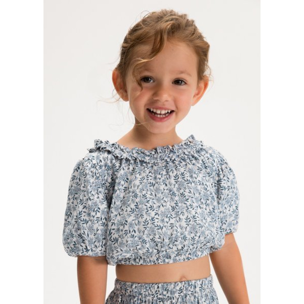 Conjunto Blusa Viscosa Y Falda-Pantalón Viscosa Flores Niña Azul Y Rosa