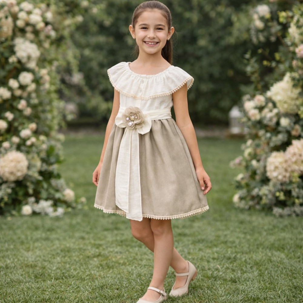 Vestido Cubanita Falda Lurex Beig/Arena