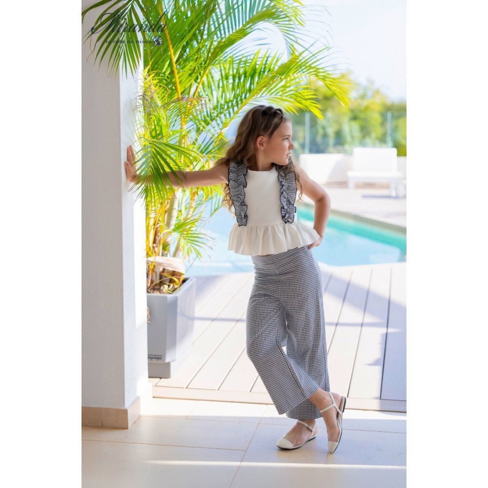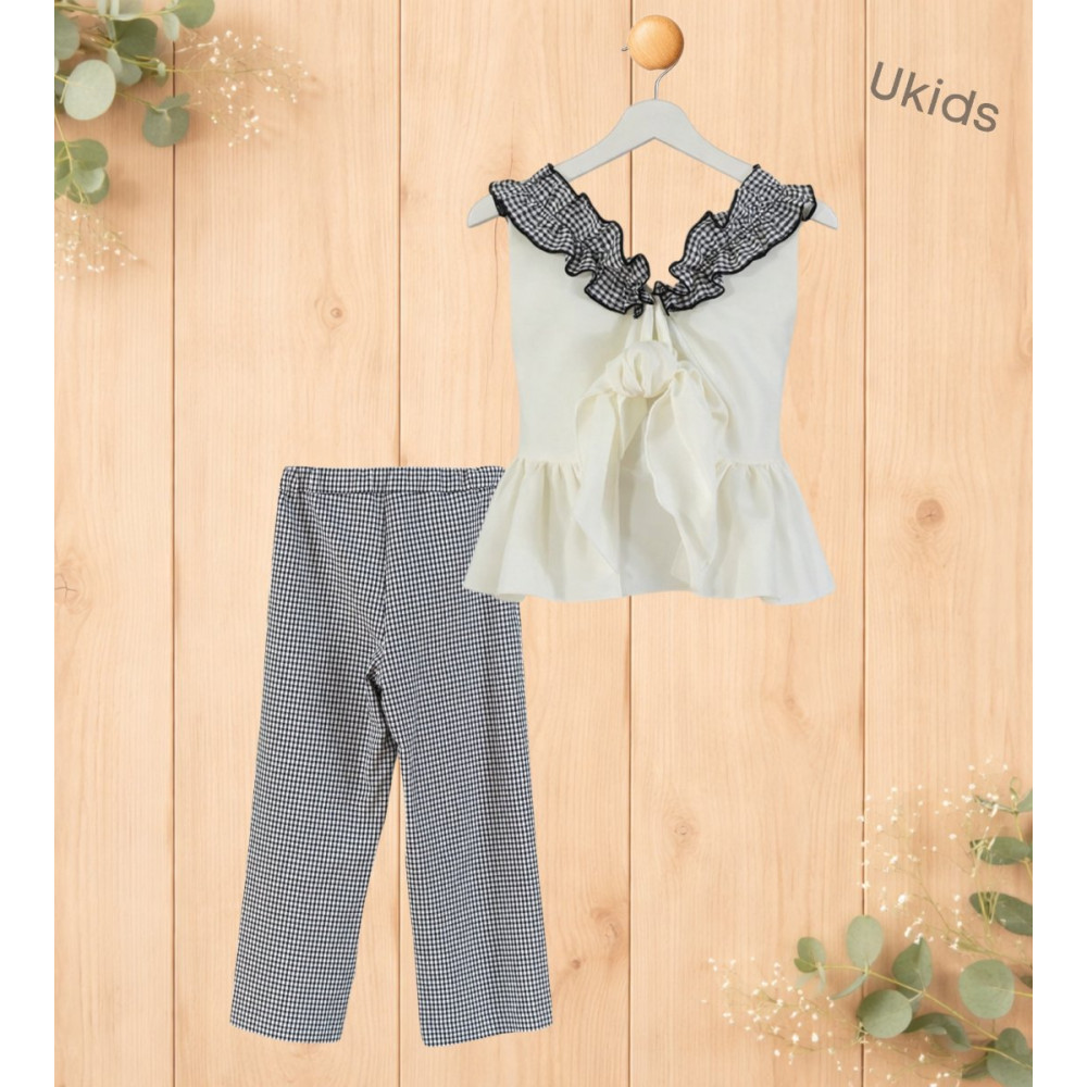 Conjunto Blusa + Pantalón Niña cuadro vichy negro y blanco