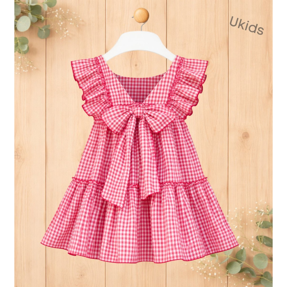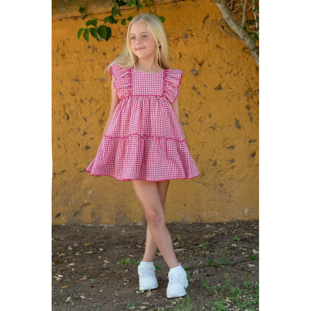 Vestido en cuadro vichi. Color fucsia