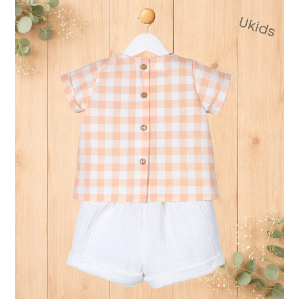 Camisa Manga Corta + Pantalón Corto Bebé Niño Rosa Palo